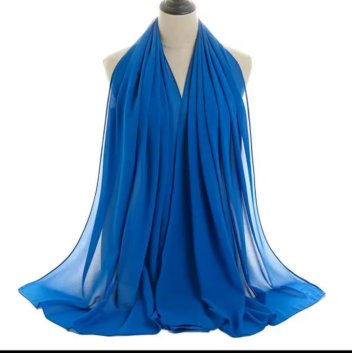"Made from high-quality georgette chiffon, this PREMIUM AEGEAN BLUE scarf is soft, lightweight, and perfect for any occasion. Its delicate texture adds an elegant touch to any outfit. Experience the luxurious feel and durability of georgette chiffon with this must-have accessory."